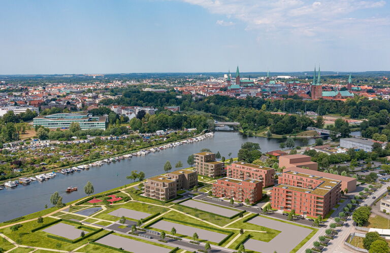 Mit Blick auf die Kanaltrave und in unmittelbarer Nähe zur historischen Lübecker Altstadt, stehen im ersten Bauabschnitt 55 moderne Eigentumswohnungen zum Verkauf – provisionsfrei für unsere Käuferinnen und Käufer. Das neue Quartier vereint urbanes Lebensgefühl mit der Qualität naturnahen Wohnens. Für alle, die stadtnah leben möchten – und zugleich das Grün, das Wasser und das Gefühl von Zuhause schätzen.